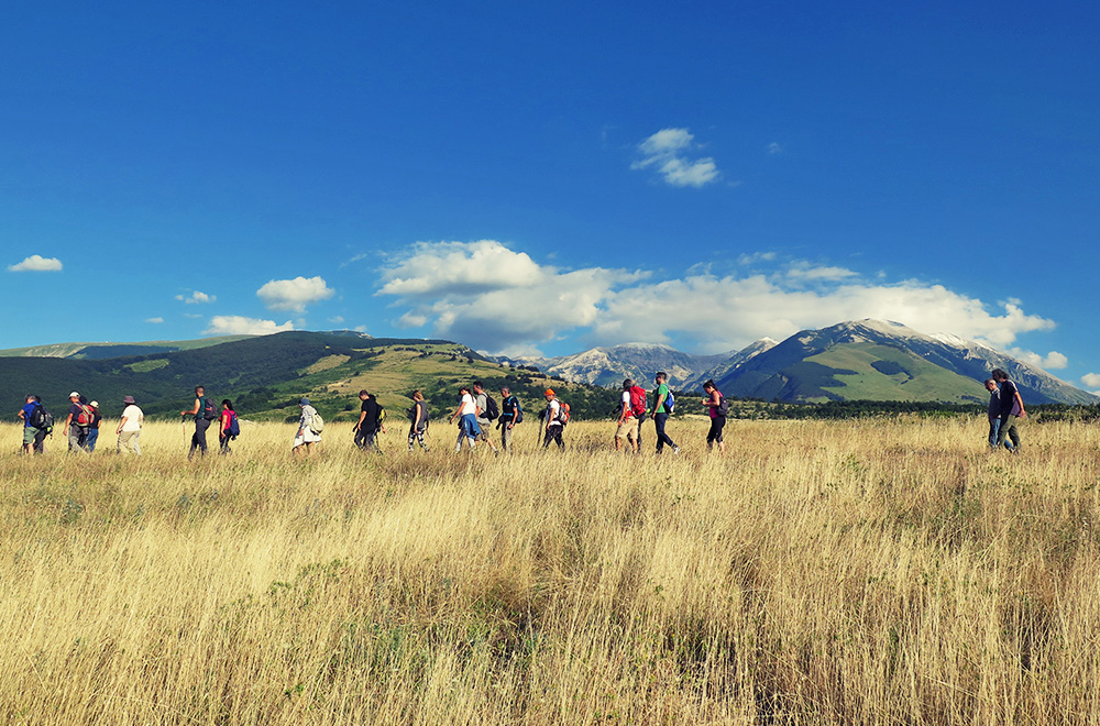 In uno scenario da favola, la Valle Giumentina, percorreremo i sentieri delle Capanne in Pietra e dello Spirito e vi racconteremo la Majella, con il cuore, attraverso le parole delle sue genti, attraverso i canti.